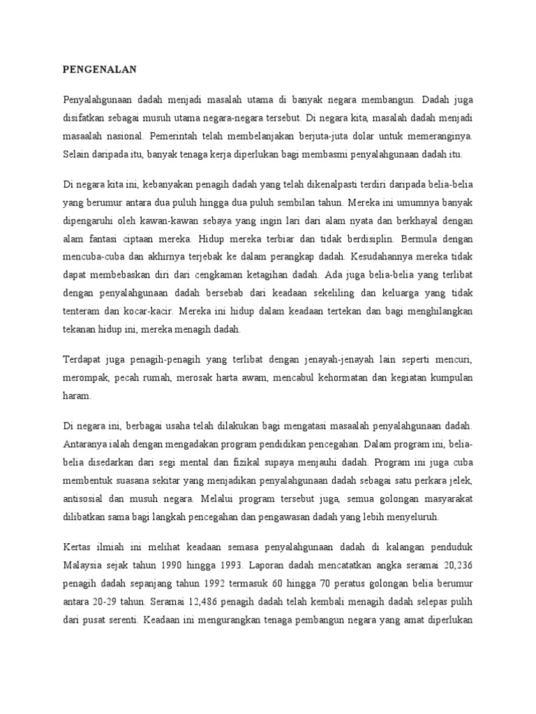 Karangan Cara Cara Mengatasi Masalah Penyalahgunaan Dadah Pdf