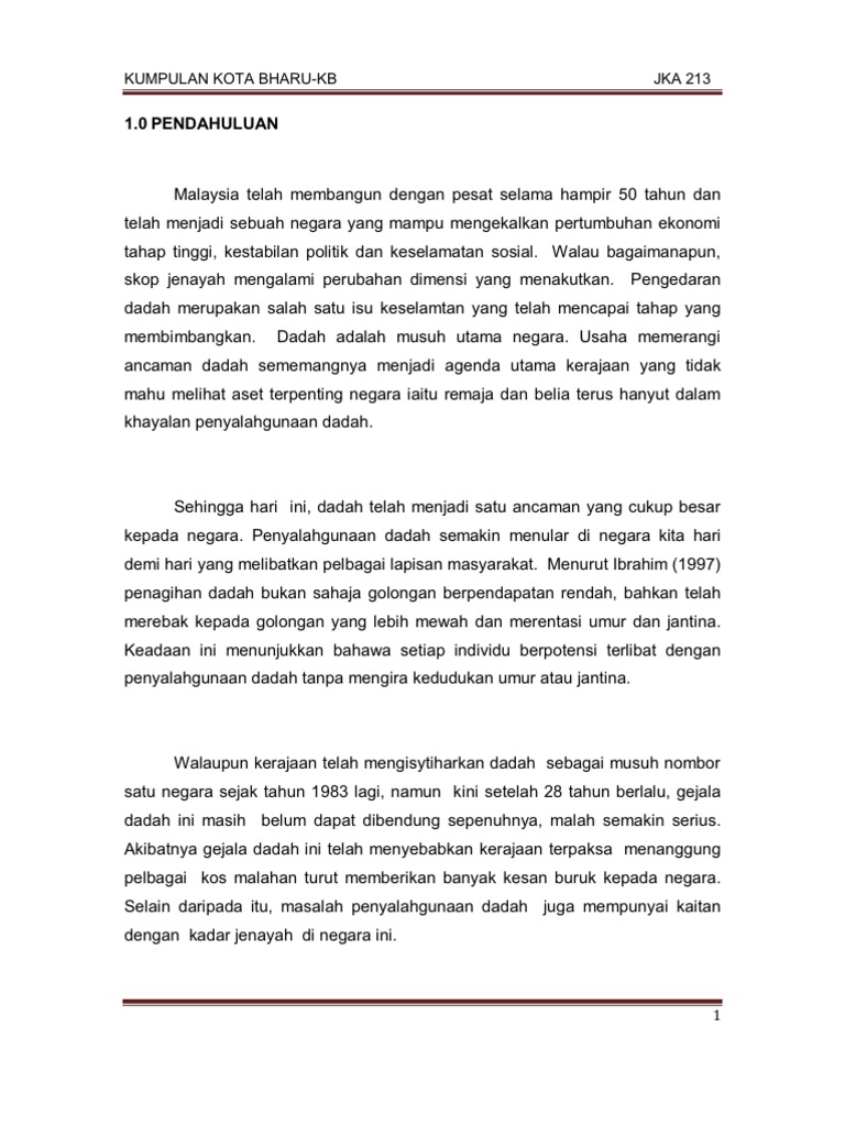 Dadah atau drug adalah bahan atau kimia yang amat merbahaya kepada individu yang menggunakannya kerana ia mengubah cara minda dan tubuh manusia berfungsi. Misalkan Anda membuat laporan hasil kegiatan KKN maka Anda bisa memulai menuliskan dahulu ide-ide utamanya. Remaja merupakan mereka yang mudah mempunyai perasaan ini kerana pada ketika ini perasaan ingin tahu tentang sesuatu yang baru mula.